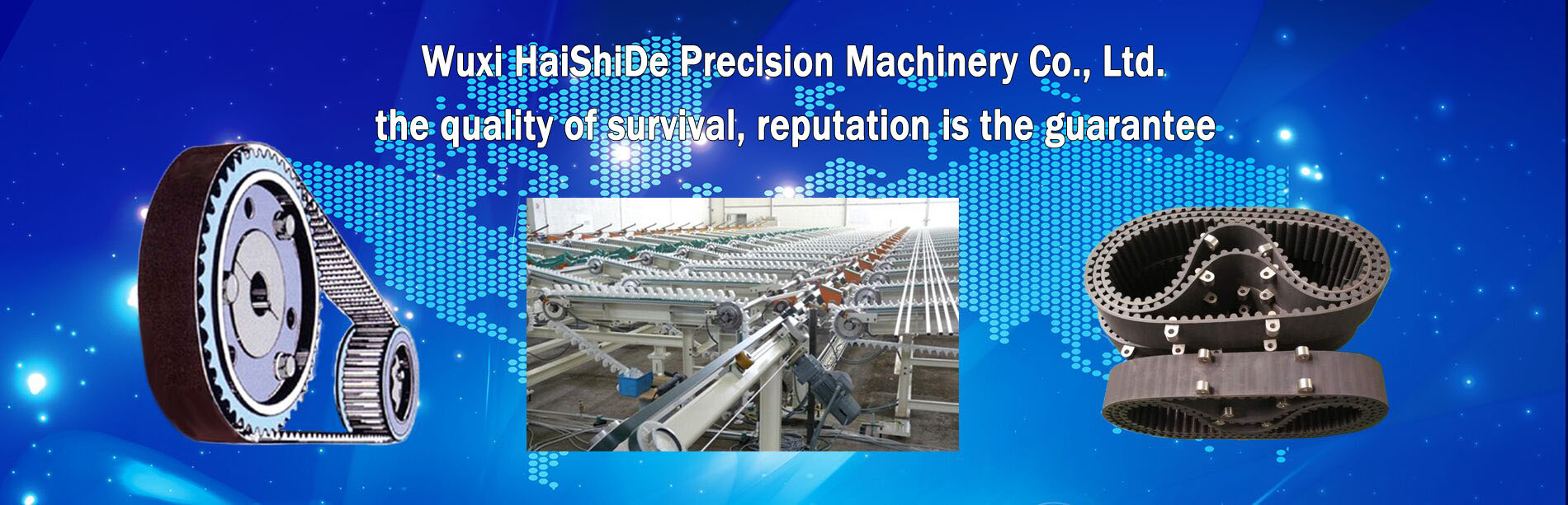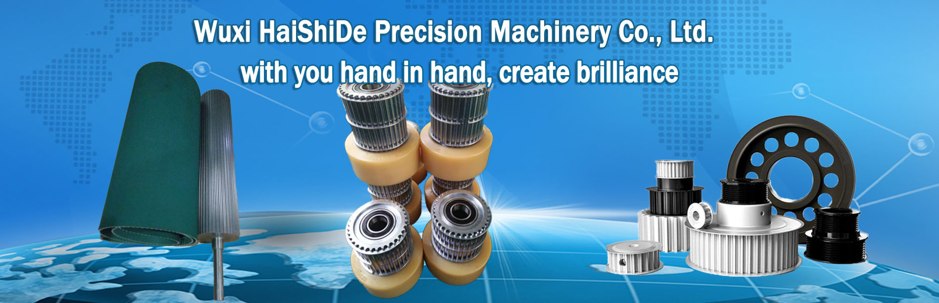 Wuxi HaiShiDe Precision Machinery Co., Ltd. Locates in Wuxi City, Jiangsu Province.We are researching, developing, and fabricating all kinds of precision transmission accessories which including Synchronous Pulley, V Belt-wheel, gear, Sprocket Wheel, Coupling, Transmission Shaft and so on. At the meantime, we technically cooperate with famous Drive Belts manufacturers (such as GATES \BANDO \MITSUBOSHI \OPT\MEGADYNE) and Bearing manufacturers (such as NSK\SKF). ......